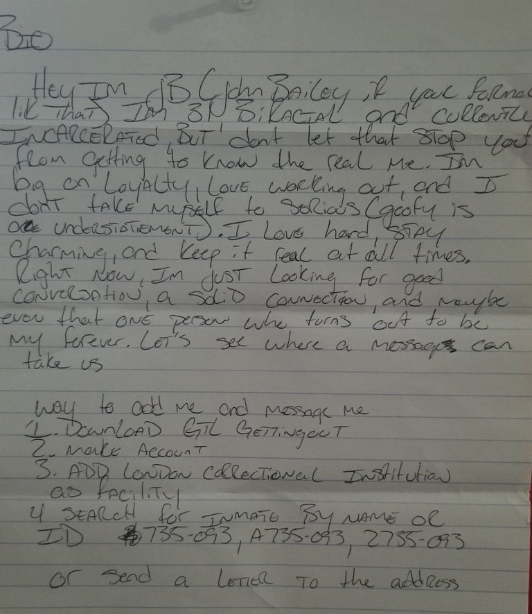 I’m just looking for something real, no games, no lies, maybe a friendship or whatever just something genuine. I The fastest way to get ahold of me is to download the getting out appJackson correctional institution in Wisconsin my inmate numbers 559873 or send me mail through